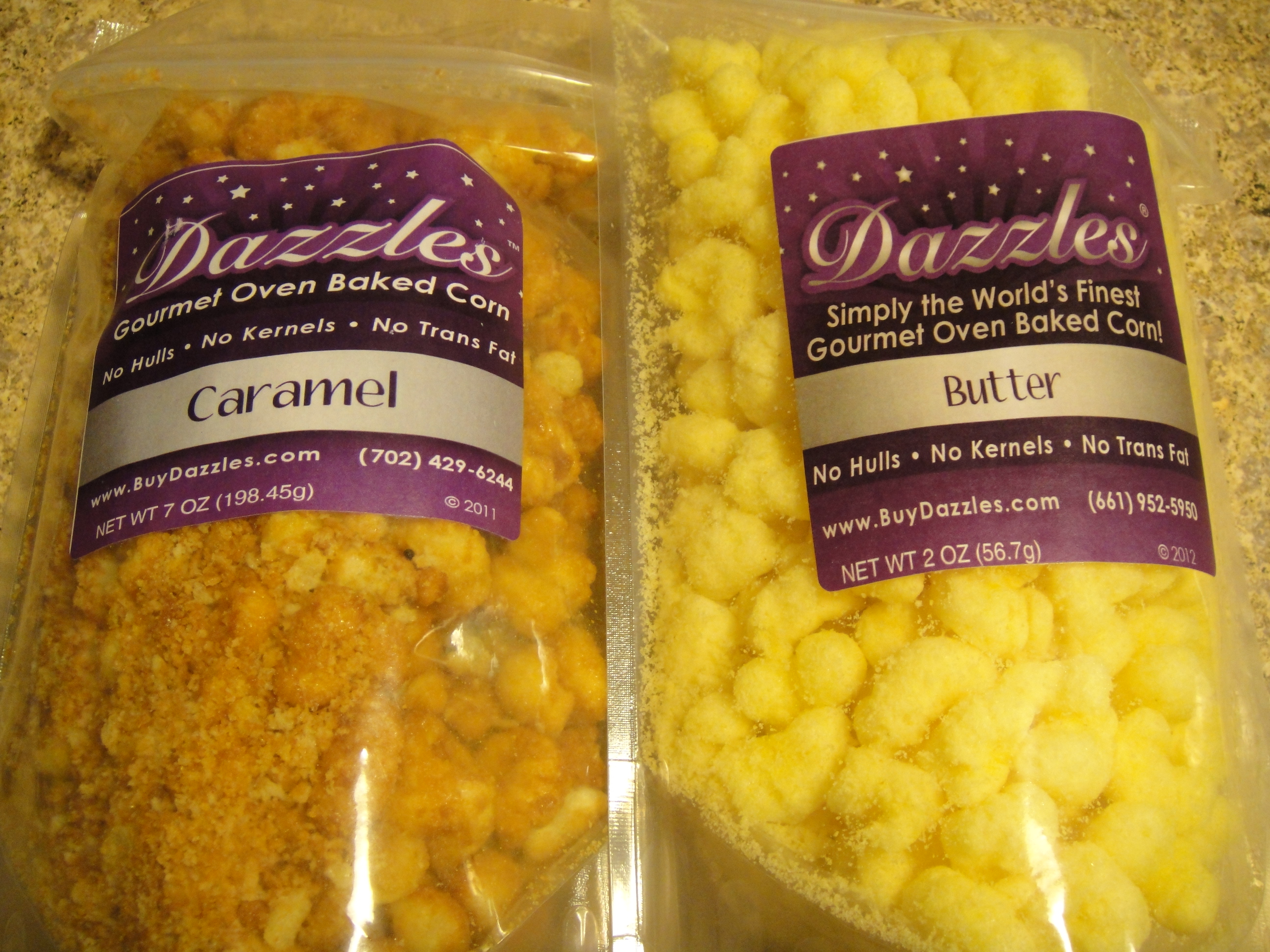 So the other day I received a package with two different flavor Dazzles – Butter and Caramel Corn.  Here is my review: